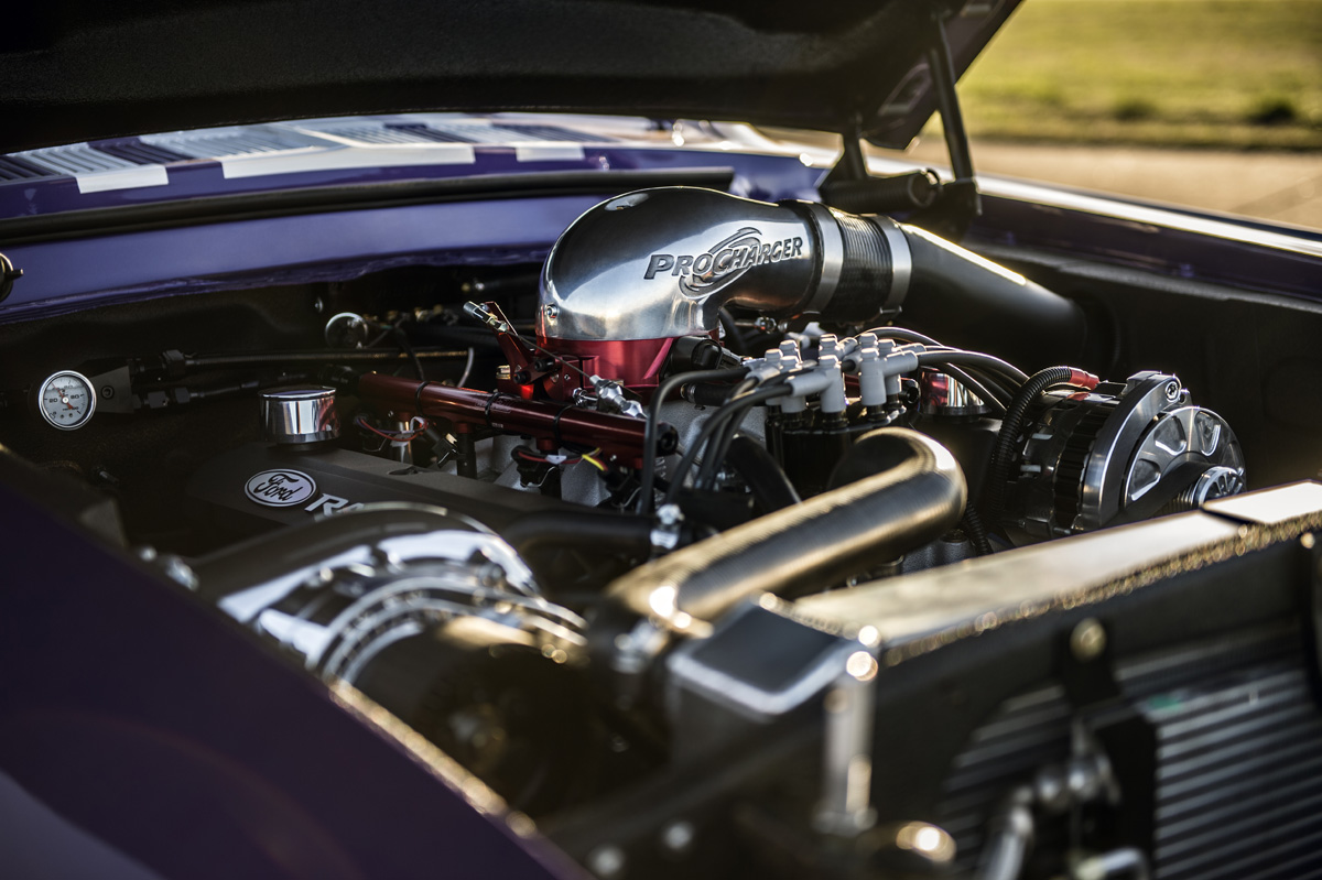 The 7.0-liter supercharged V8 is based on a Ford Performance crate engine and has been tuned to deliver 770 horsepower, channeled to beefy 18-inch wheels with sticky rubber, big brakes to keep it all in check, and a free-flowing side exhaust to let ‘er purr.
