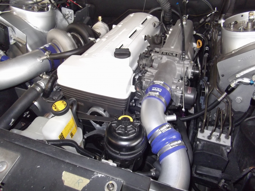 The six-cylinder engine has been comprehensively modified with HKS forged internals and supplemented by a GReddy T78 turbo and a HKS supercharger. All told, the crazy engine delivers a more-than-sufficient 900 hp, all sent to the rear wheels via a strengthened transmission.