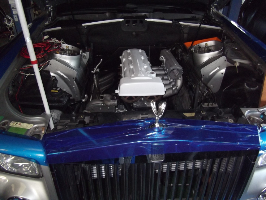 However, when the engine of a Japanese owner’s Phantom went kaput, he decided against finding another Rolls V12 and instead went for one of the tuning world’s favorite engines, the 2JZ made famous by the Toyota Supra.