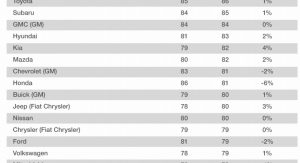 On the luxury side, the top three brands were Lexus (86), Mercedes (84), and Cadillac (83). Acura finished last with a score of 80 but that’s a significant improvement from 2016 when the company only received a score of 76.