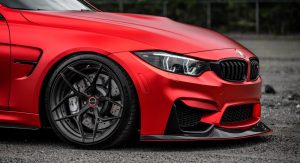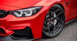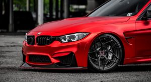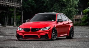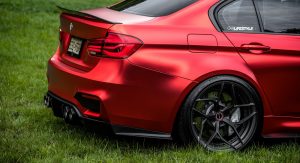 Owned by a member of the Bimmer Post forums, this F80 M3 has been bathed in a satin red chrome wrap which suits the performance sedan to a tee.