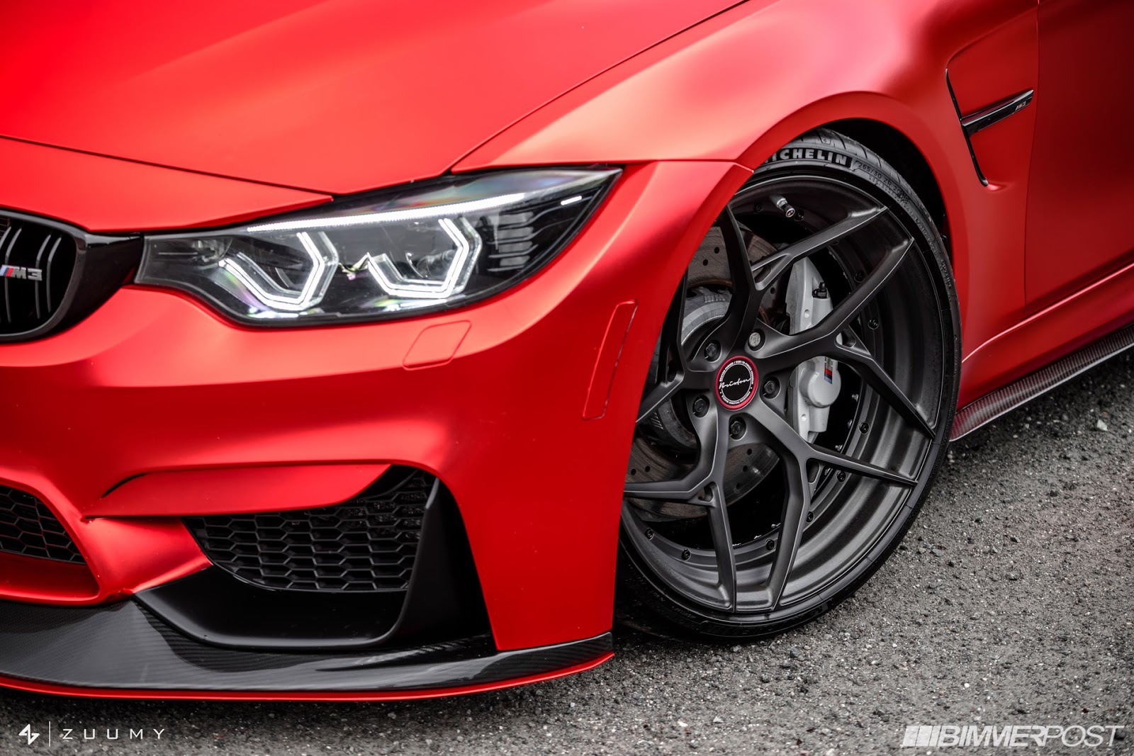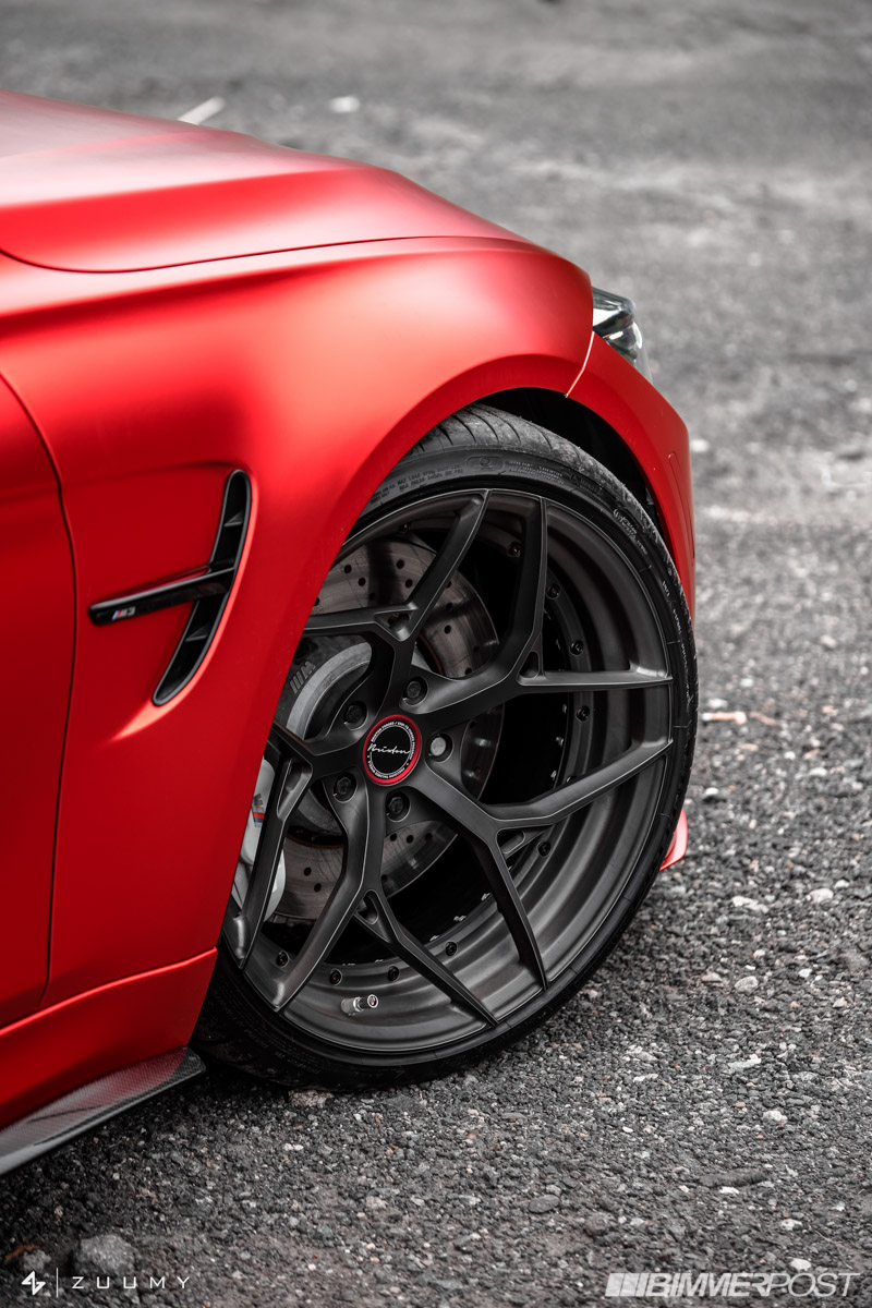 Owned by a member of the Bimmer Post forums, this F80 M3 has been bathed in a satin red chrome wrap which suits the performance sedan to a tee.