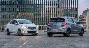 Both models are powered by a 1.2-liter three-cylinder engine that promises to deliver a “harmonious blend of lively acceleration and efficiency.” Drivers shouldn’t get their hopes up as the engine develops 78 hp (58 kW) and 74 lb-ft (100 Nm) of torque. On the bright side, the Mirage returns up to 43 mpg highway.