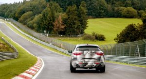 The halo version of the Stelvio lapped the ‘Green Hell’ in just 7 minutes and 51.7 seconds, posting the fastest time ever for a production SUV, smashing the previous record initially held by the 542hp Range Rover Sport SVR (8:14) before losing it to the previous generation 562hp Porsche Cayenne Turbo S (7:59.74).