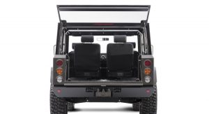 The longer version of the “world’s first all-electric sport utility truck” brings the overall length of the vehicle to 159 inches (4 meters), with the wheelbase measuring 114 inches (2.9 meters). Ground clearance remains the same with the three-door version at 15.5 in (400mm), as well as the approach and departures angles (56 degrees and 53 degrees respectively). The new breakover angle is 31 degrees.