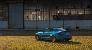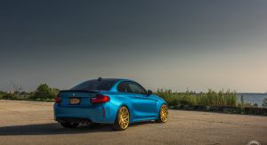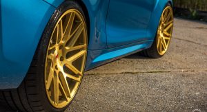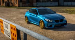 In this case, the company chose to paint them in an eye-catching golden shade, which works particularly good with the rest of this particular M2’s blue color, but they can also be had in a variety of finishes, from ceramic polishing to powder coating.
