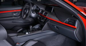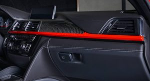 Inside, you’ve got some Ferrari Red trim on the dashboard and door panels, carbon fiber all over the center console, dashboard and on the M Performance steering wheel, plus some grippy Alcantara right where you need it most.