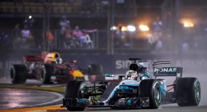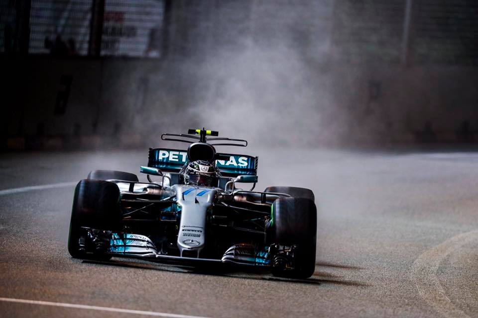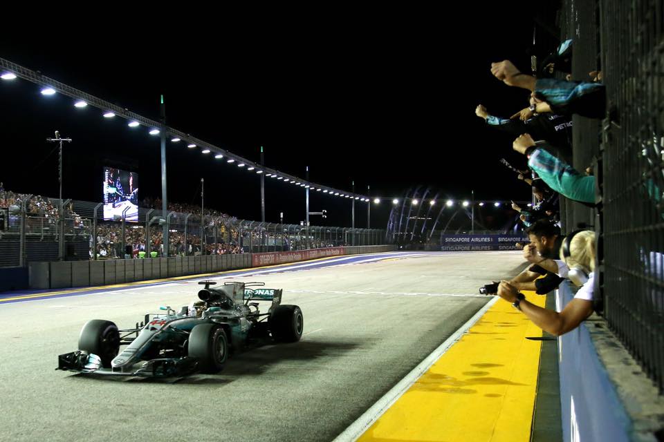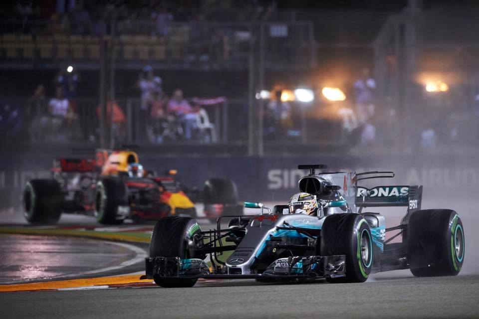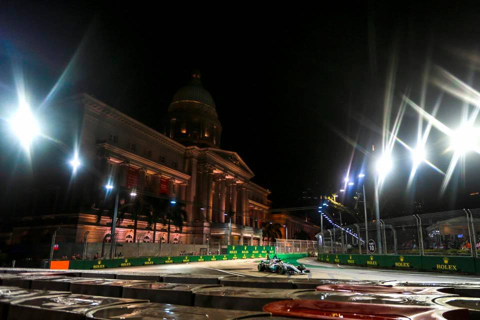 Shortly before the race began, rain started to fall at the Marina Bay Street Circuit, making the event the first ever F1 race to be held at night in the rain.
