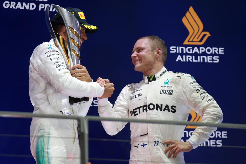 Mercedes driver Valtteri Bottas finished third, Carlos Sainz claimed a career-high fourth, Sergio Perez finished fifth and Jolyon Palmer secured sixth, just a day after learning he’ll lose his Renault drive at the end of the season.