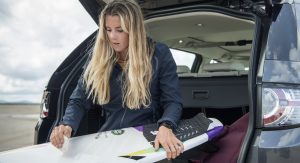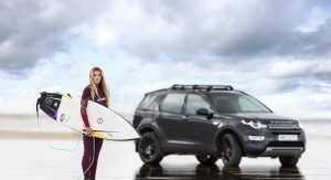 Eventually, Lucy Campbell got to test both the surfboard as well as the Discovery Sport on her way to facing the waves of Whiterocks beach in Northern Ireland.