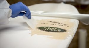 Jaguar Land Rover’s ‘Waste to Wave’ surfboard was built in partnership with SkunkWorks Surf Co, using recycled plastic derived from early clay design car models.
