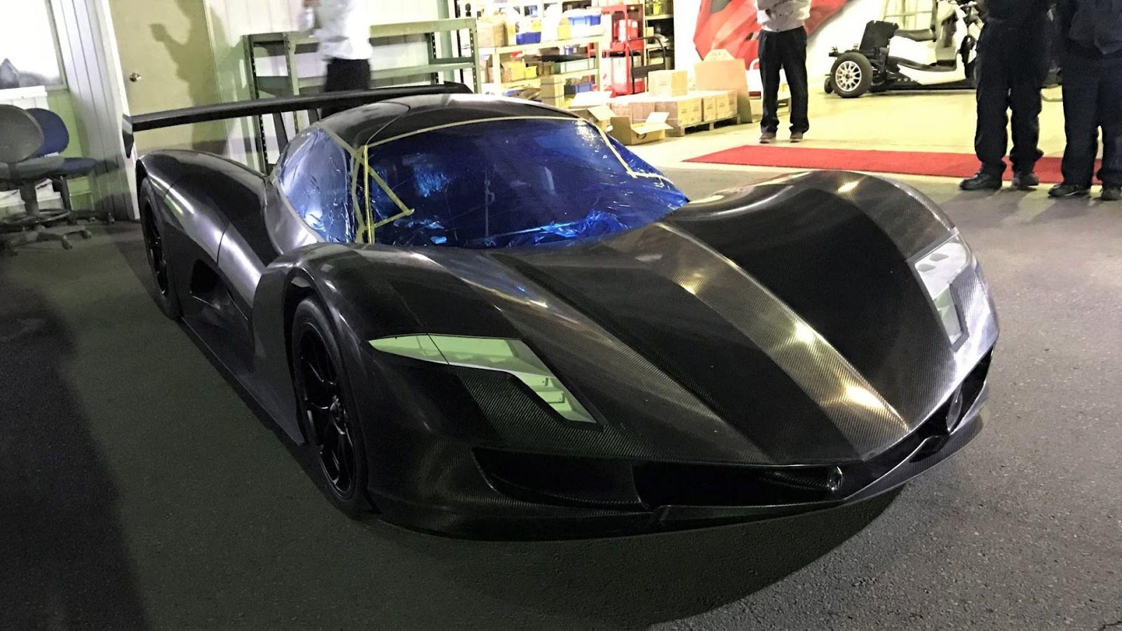 Early renderings of the vehicle show that all of its bodywork will be made from lightweight carbon fiber and that it’ll feature a hunkered down look, gullwing doors, Aston Martin-esque taillights and a huge rear wing.