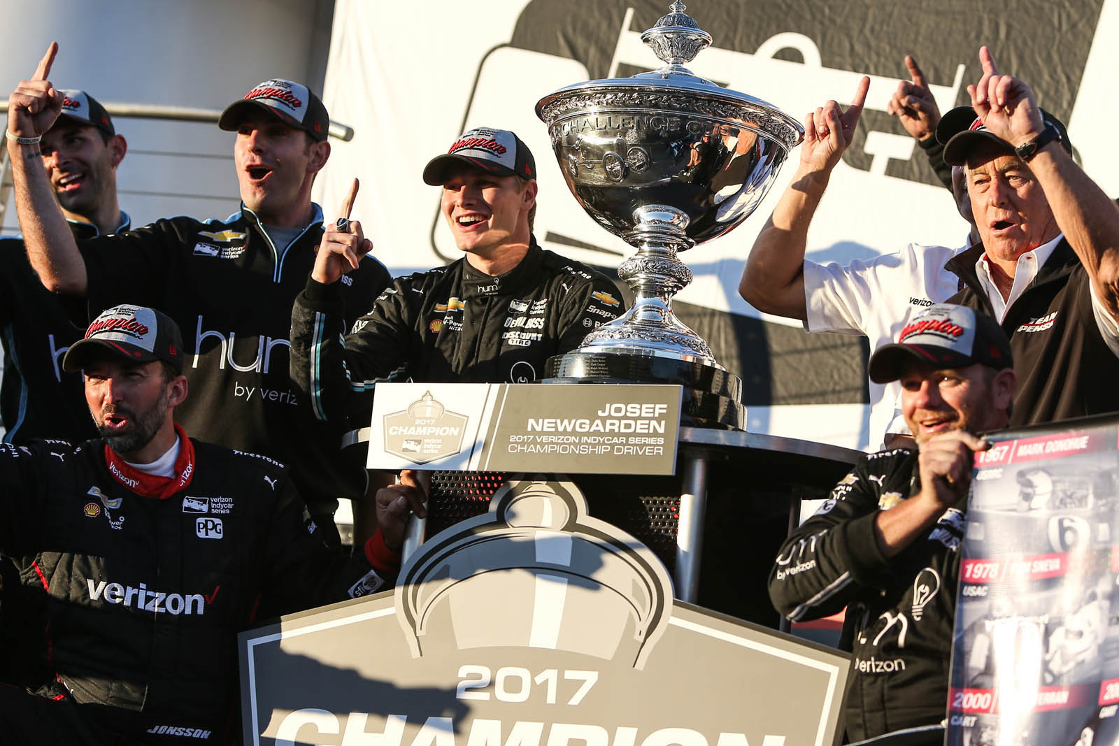 With that, Newgarden became the first American to win the championship in since Andretti’s Ryan Hunter-Reay in 2012. Last year’s champion Pagenaud is from France, and both Dixon (champ in 2013 and ’15) and Will Power (’14) are from Australia. It marks Penske’s 15th open-wheel title (three in the current iteration of the series) and Chevy‘s fourth consecutive title, with Honda having last won in 2013.
