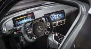 Just in case you haven’t realized it yet, this isn’t your normal boosted hybrid powertrain, this is some next level engineering that finds its way on public roads for the first time. But what does that mean for the acceleration figures? Mercedes AMG says that the Project One is capable of exceeding 217mph (350km/h) flat out but we already knew that. What we didn’t know is that the Project One is capable of a 0-124mph (200km/h) in less than six seconds. That’s right, six.