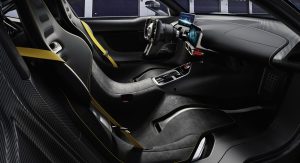 Power is transmitted to the rear wheels via an all-new automated eight-speed manual transmission developed specifically for the Project One. The gearbox is activated hydraulically and offers both auto and manual modes, with the latter operated via paddles unsurprisingly. A high-strength carbon-fiber monocoque body forms the basis for the car, with the integrated engine and transmission also having load-bearing functions, as both completely support the rear suspension.