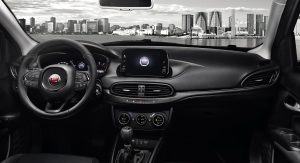The interior of the new Fiat Tipo S-Design is now featuring leather and fabric seats, as well as tactile finishes for various parts of the cabin. The seats get double stitching as well as the steering wheel and gear shift while the dashboard features piano black accents and a large Tecnico Grey fascia that spans across the whole width of the cabin.