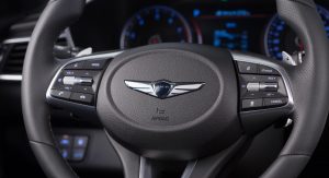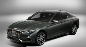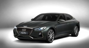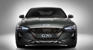 From a design standpoint, Genesis says the G70 showcases the brand’s new styling direction and claims the sedan “captures both beauty and tension, like an athlete poised to perform.” Some of the key styling traits include the short front overhang and long hood, sharp silver wheels, prominent character lines, LED taillights and oval-shaped dual tailpipes. Compared to the Stinger, the G70’s design appears much more restrained and will perhaps appeal to a slightly older generation of buyers.