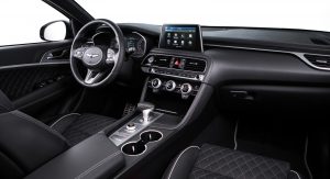 Engine options are expected to be shared between the two models and the images confirm this particular car has a twin-turbo 3.3-liter V6 engine. It produces 365 hp (272 kW) and 376 lb-ft (494 Nm) of torque in the Stinger. The engine should be joined by a turbocharged 2.0-liter four-cylinder producing 255 hp (190 kW) and 260 lb-ft (352 Nm) of torque. Both engines will be connected to an eight-speed automatic transmission which can be paired to an optional all-wheel drive system.