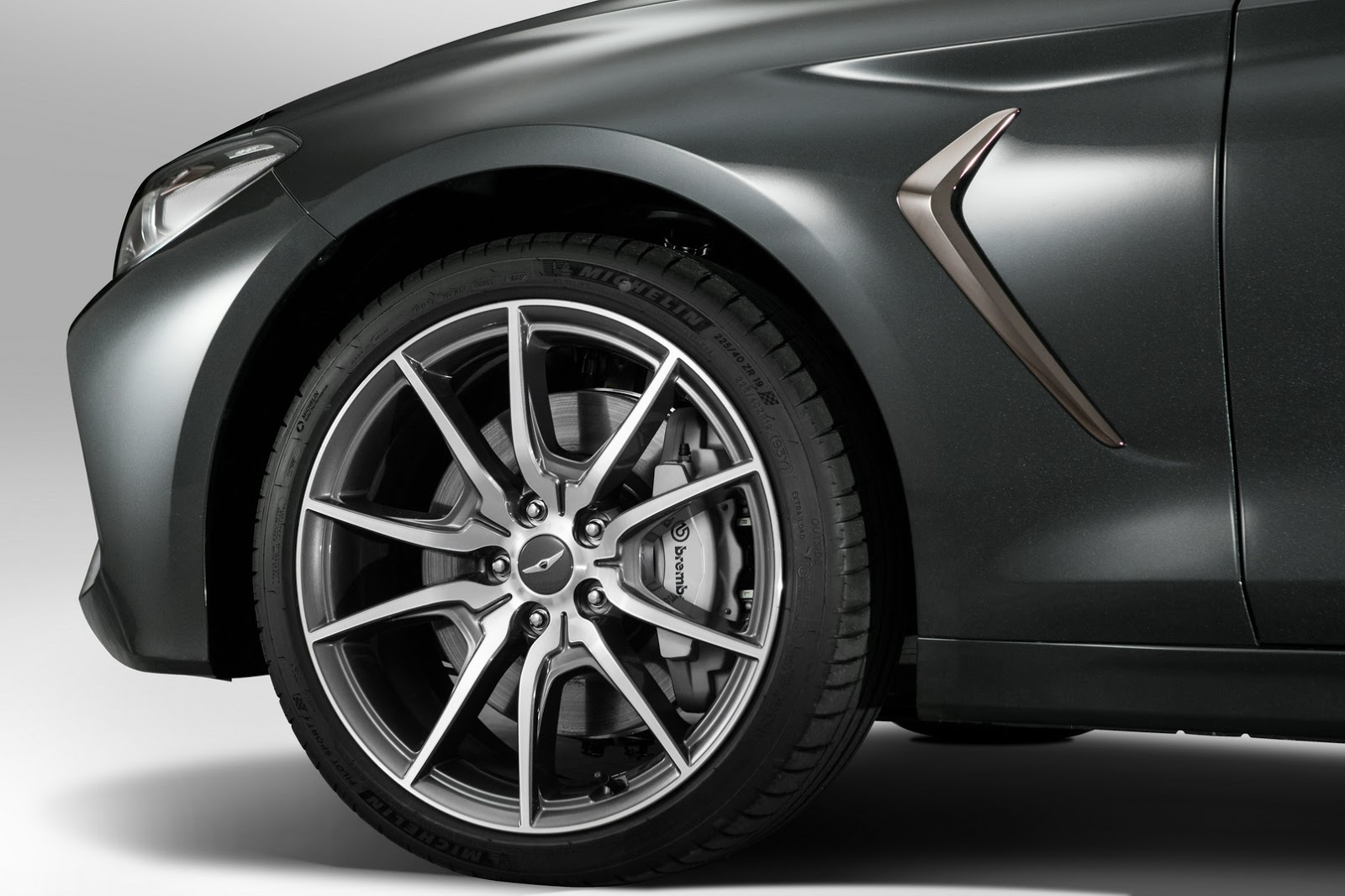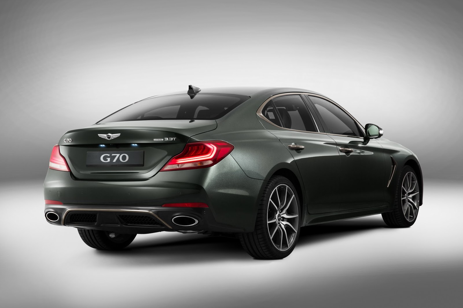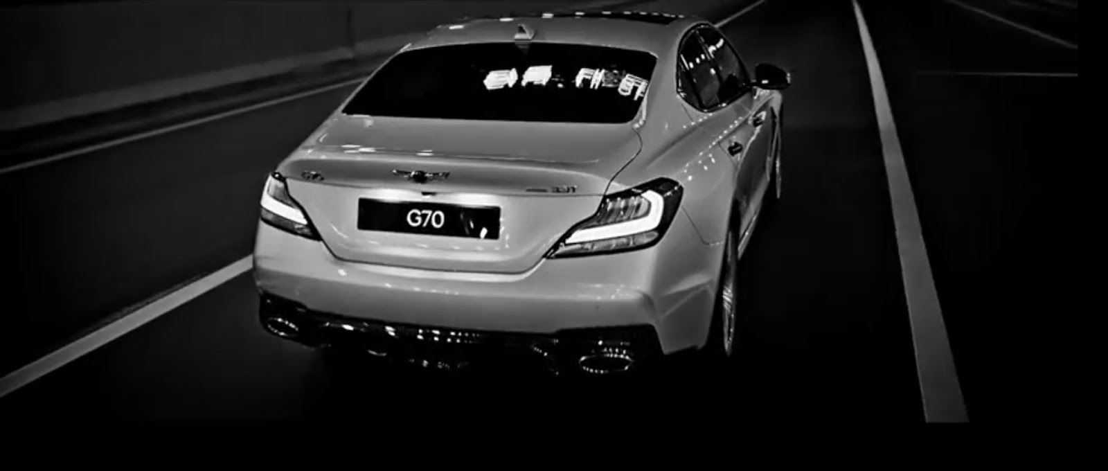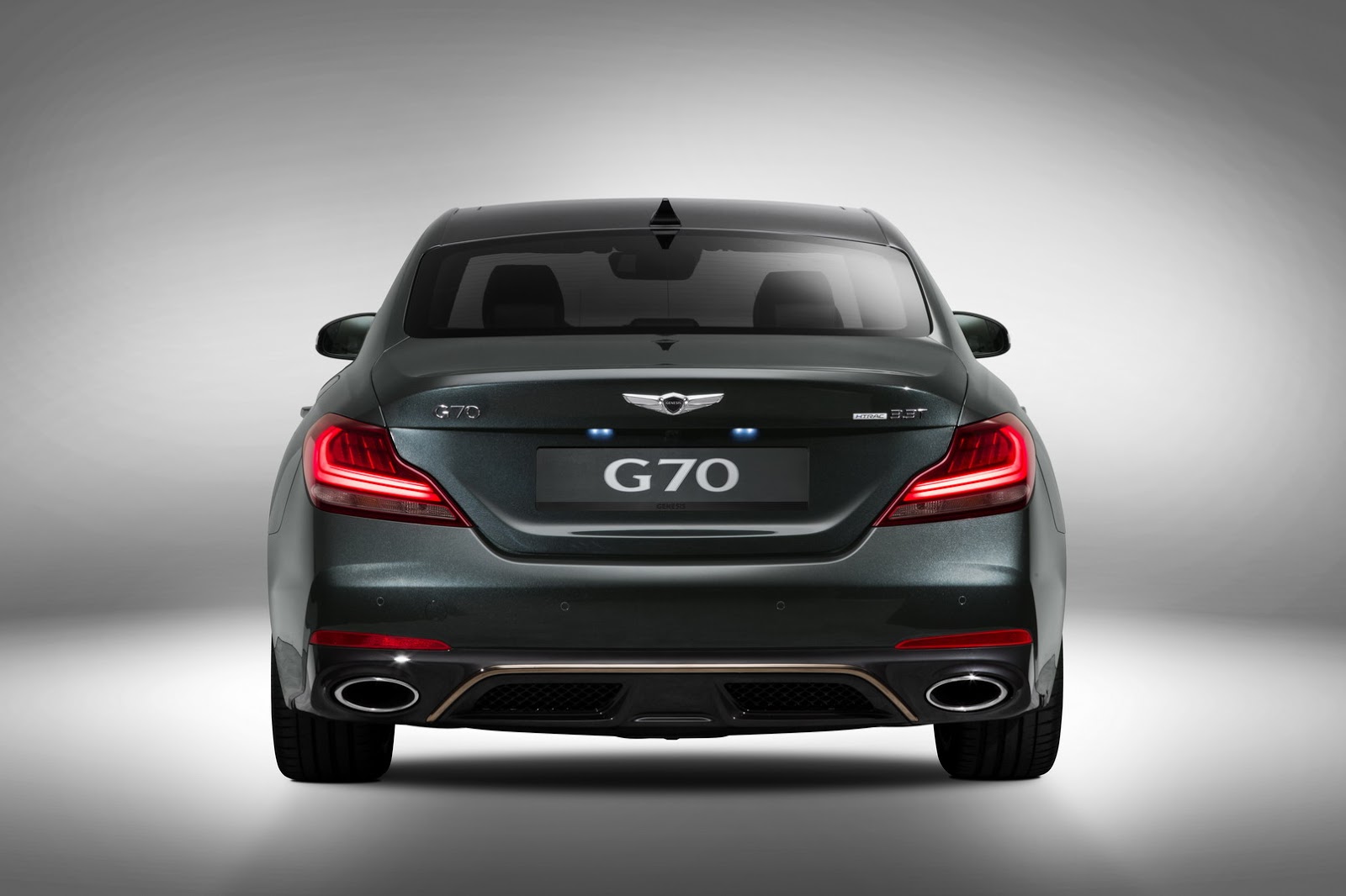 The rear looks pretty appealing too as the G70 has an integrated trunk spoiler and a sporty dual exhaust system. We can also see stylish taillights and a dark lower rear fascia.