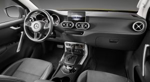 Inside the X-Class is the first mid-size pickup truck to come with an infotainment system that features an integrated SIM card, enabling it to use all of Mercedes’ connected services, including accessing the vehicle’s functions via a smartphone.