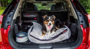 These are the dog guard boot separator, a ramp that can be used by smaller or less mobile four-legged friends to use for getting in an out easier, boot liner to protect the upholstery from muddy paws, non-spill water bowl, washable dog bed, and tidy used to store leads, treats, and waste bags.