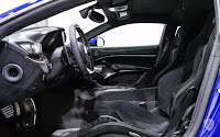 Stepping inside the cabin reveals a beautifully restrained cockpit free of any unnecessary ‘look-at-me’ components. In fact, beyond the orange of the seat belt buckle and a handful of red buttons, there isn’t a hint of color inside. Instead, there is simply black leather and alcantara joined by white stitching.