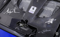 To ensure the paint color dominates the exterior of the supercar, the owner has opted for subtle silver wheels and brake calipers while ticking every carbon fiber options box imaginable. That means the car has carbon trimmings on the front bumper, side skirts, air vents, rear fascia and diffuser. Even the carbon engine cover has the signatures of Maurizio Arrivabene, Sebastian Vettel and Kimi Raikkonen.