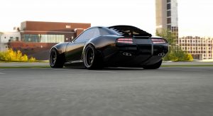 It’s got a blacked-out exterior, an ultra-wide body kit, an aggressive front splitter, daytime running lights and an intricate rear-end aero design for when you want to take your imaginary Firebird to an imaginary drag strip.