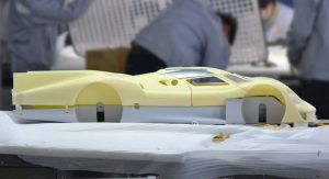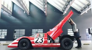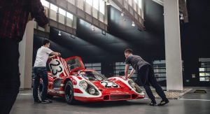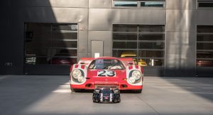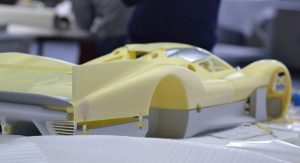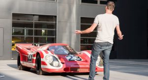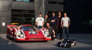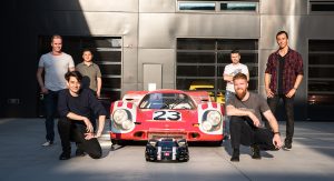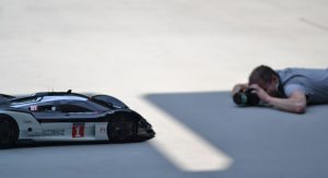 With the help of Porsche, the designers were also able to build a scale model of the racer and arrange a photoshoot alongside a red and white Porsche 917.