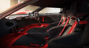 Rather than a flat decklid and engine cover with no obvious aerodynamic elements, the 908-04 RSR has a huge rear wing complemented by a racing livery very similar to the Porsche 919 LMP1 car. Inside, the RSR adopts a two-seat layout and surprise, surprise, has three pedals and a stick-shift.