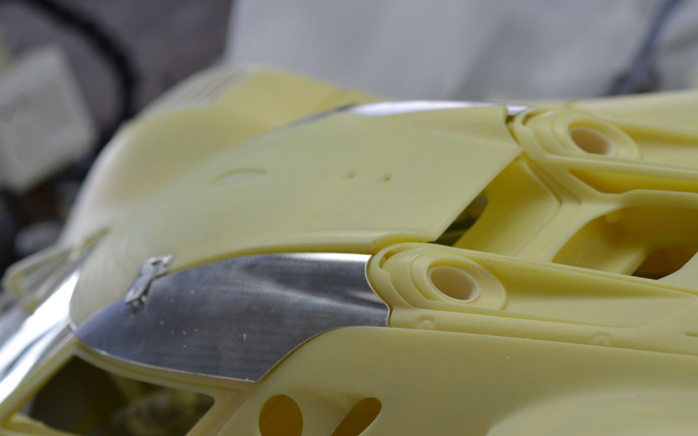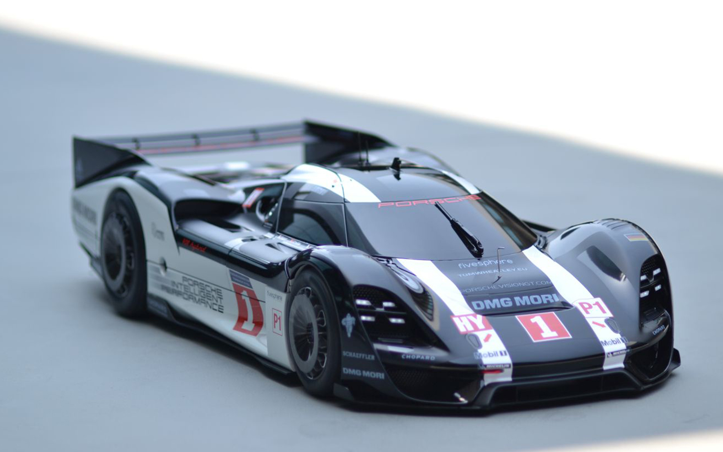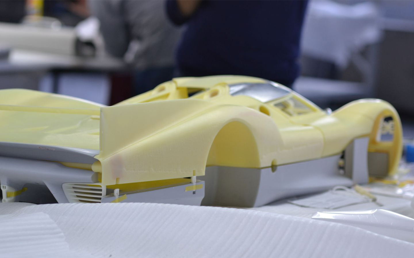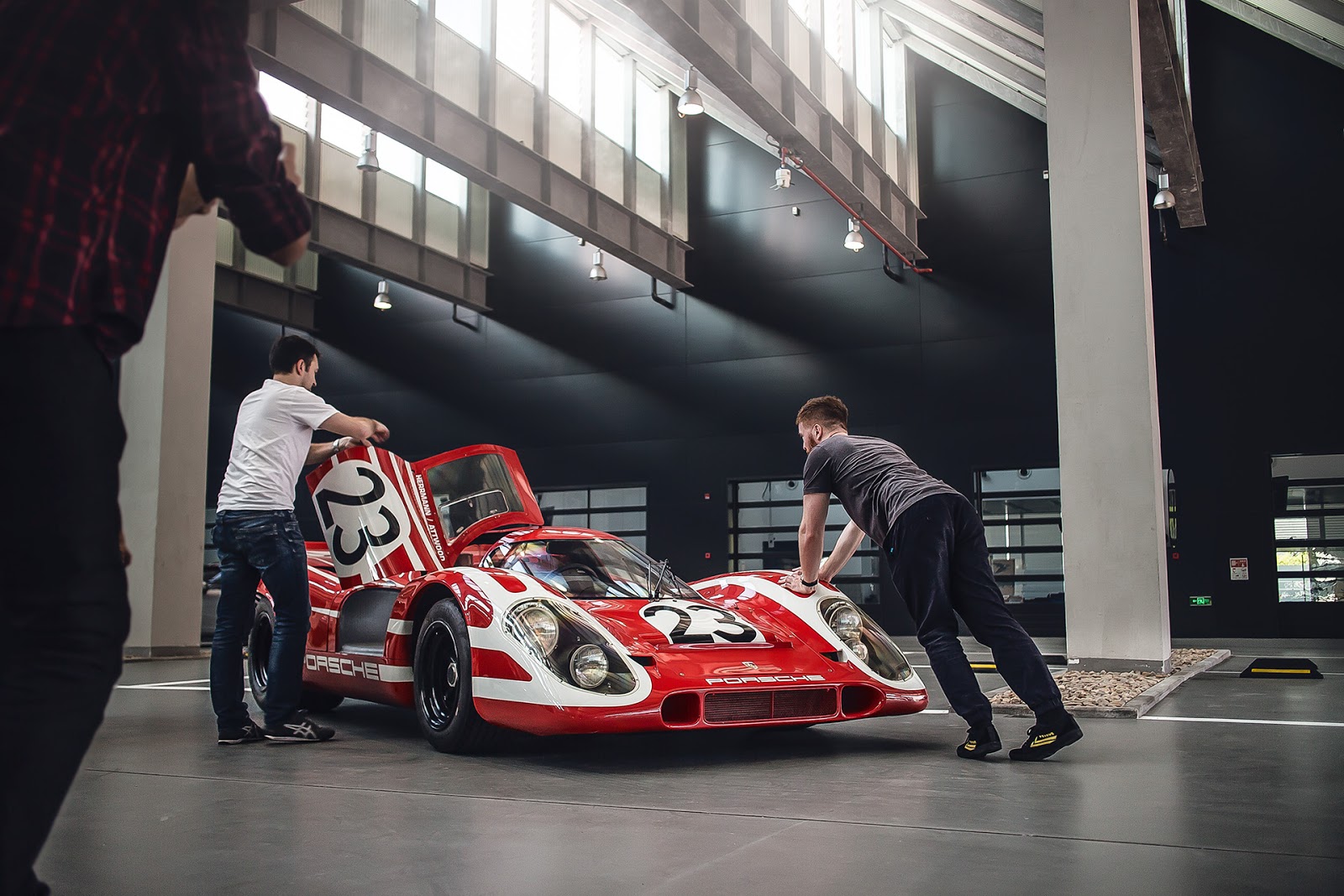 With the help of Porsche, the designers were also able to build a scale model of the racer and arrange a photoshoot alongside a red and white Porsche 917.