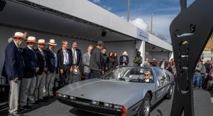 The star of the show, however, was undoubtedly the one-of-a-kind Marzal concept, designed by Marcello Gandini at Bertone, with its dramatic glass gullwing doors. The silver concept was originally unveiled at the 1967 Geneva Motor Show and was driven at the Monaco Grand Prix by Prince Rainer and Princess Grace. The Marzal was sold at Villa d’Este in 2011 from the Bertone museum to a private collector for some $2 million.