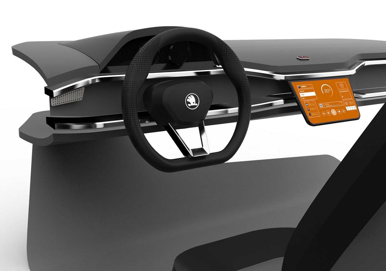 This render from designer Kristyna Karpalova, who came up with a simple yet ultra-modern take on a Skoda dashboard, meant for car-sharing.
