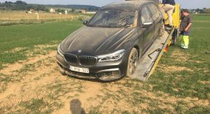 Nevertheless, somebody who claims they were there, pointed to a “little hole in the road” causing the driver of the M760Li to go off-road at what seems like high speed – judging by the distance traveled.