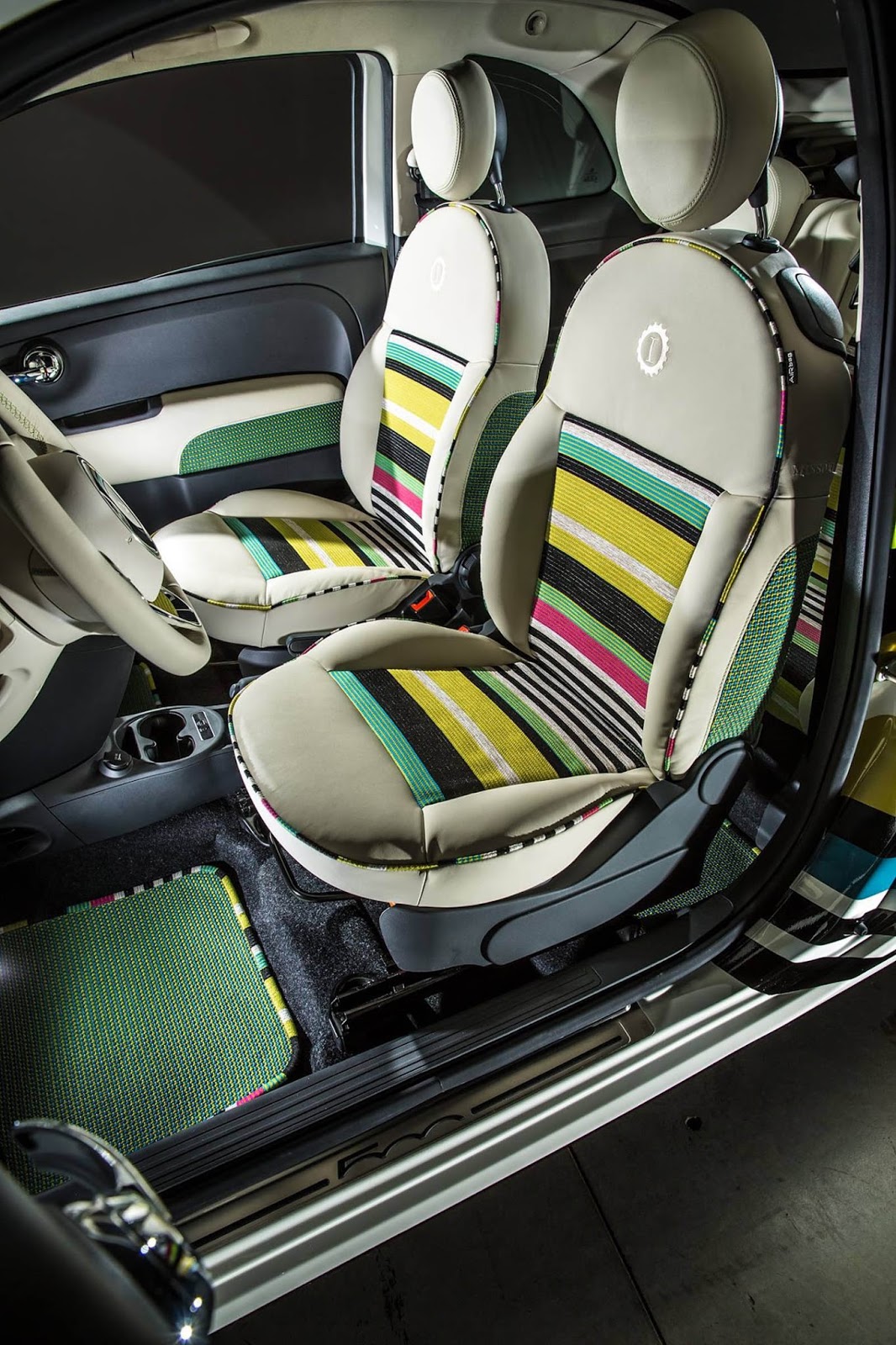 This latest is the Fiat 500C Missoni edition, decked out inside and out in the signature multicolored stripe motif of the Italian fashion brand in honor of its head Angela Missoni.