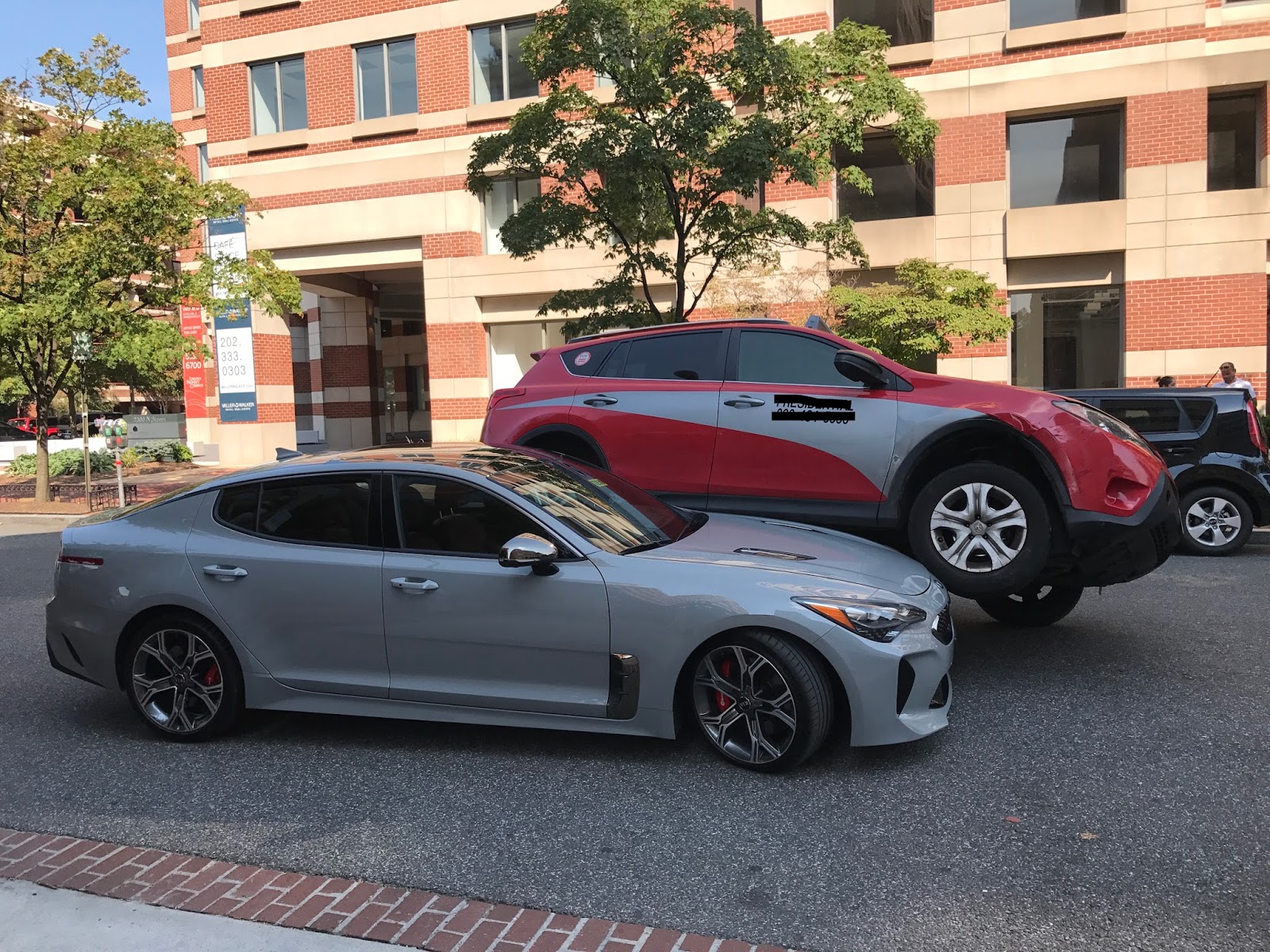 Local blog PoPville received images from one of its readers of a grey Stinger that was squished by a Toyota RAV4 taxi in a bizarre and unfortunate scene, particularly for the South Korean sports sedan.