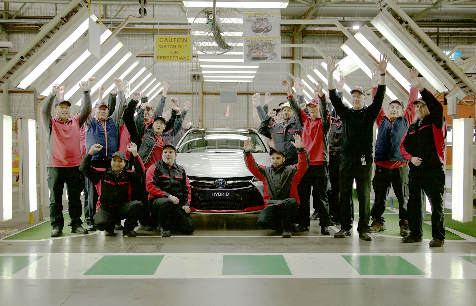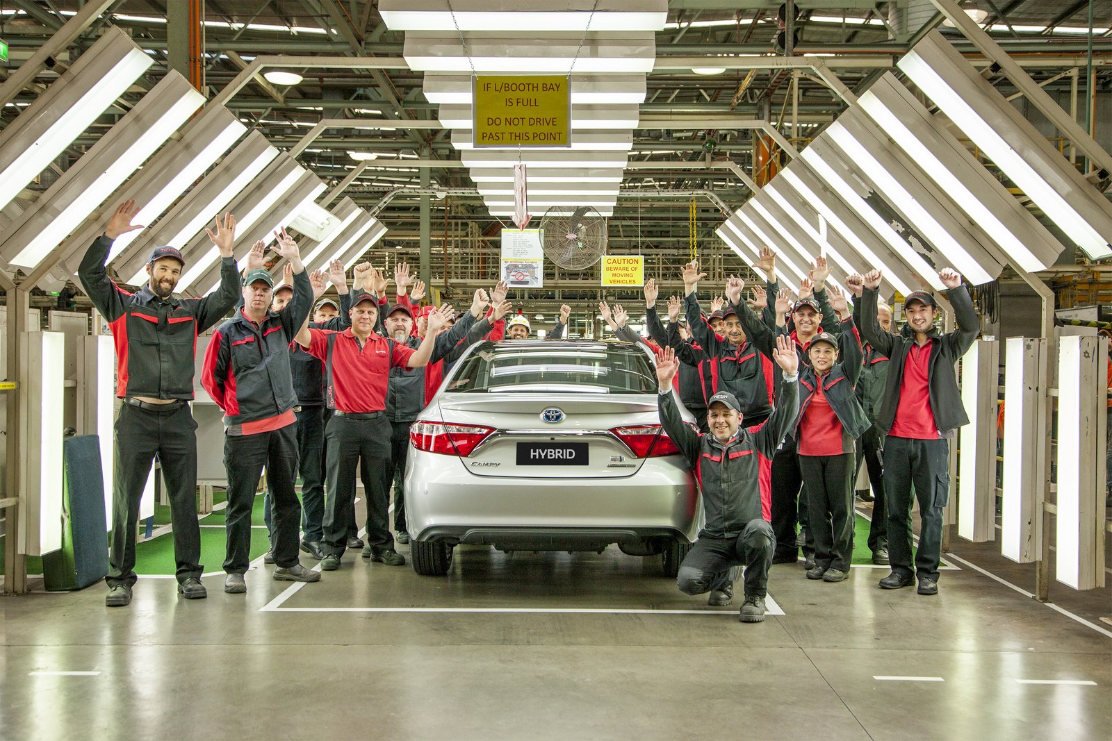 Toyota’s tribute to Australian manufacturing is notably tamer as it’s the Camry Hybrid Commemorative Edition.