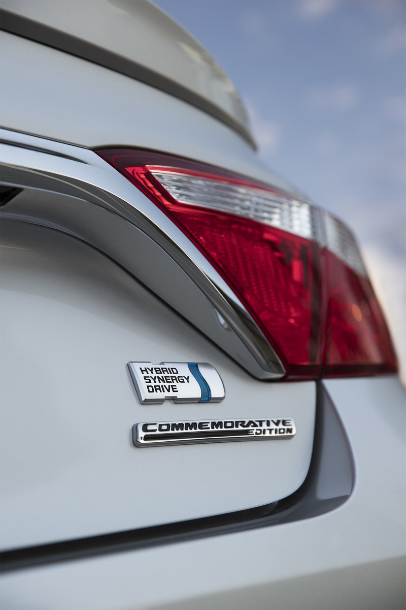 Based on the Camry Atara SL, the limited edition features a silver metallic exterior with a contrasting black roof and a red accent beneath the grille. Other highlights include a “sports mesh” interior, blue footwell illumination, and Camry-branded scuff plates. Rounding out the changes are Commemorative Edition badging on the trunk and floor mats.