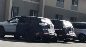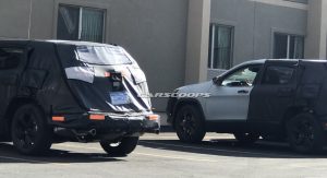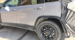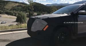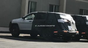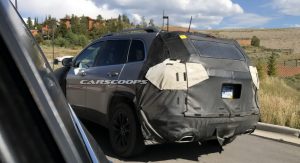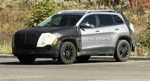 The pictures don’t reveal much but previous reports have suggested the Cherokee will have a new front fascia with a revised grille and modified headlights. The crossover’s distinctive split headlights could be jettisoned for a more conventional setup that echoes the rest of the Jeep lineup.