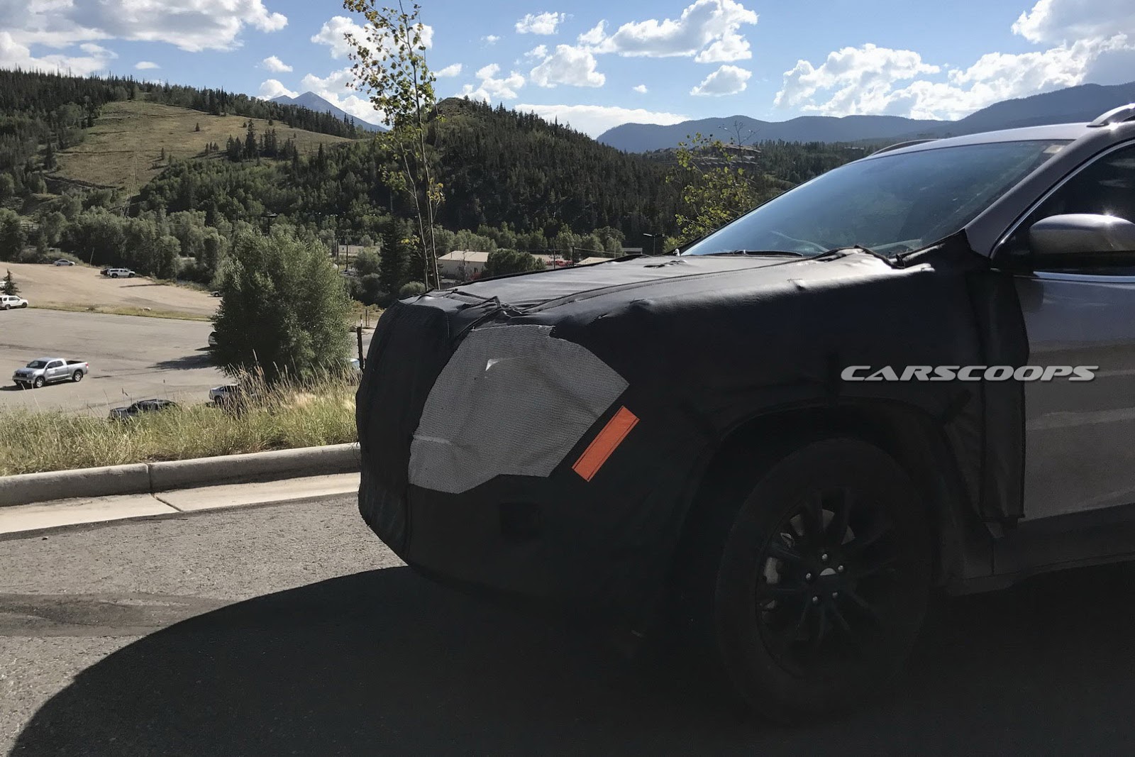The pictures don’t reveal much but previous reports have suggested the Cherokee will have a new front fascia with a revised grille and modified headlights. The crossover’s distinctive split headlights could be jettisoned for a more conventional setup that echoes the rest of the Jeep lineup.