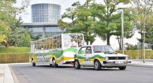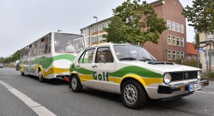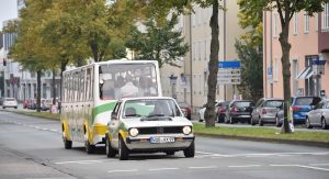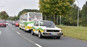 It’s a first-generation Golf, hooked up to a matching trailer with room for 36 people on board. It was called the Bähnle, and was used between 1976 and 2003 for guided tours through the city.