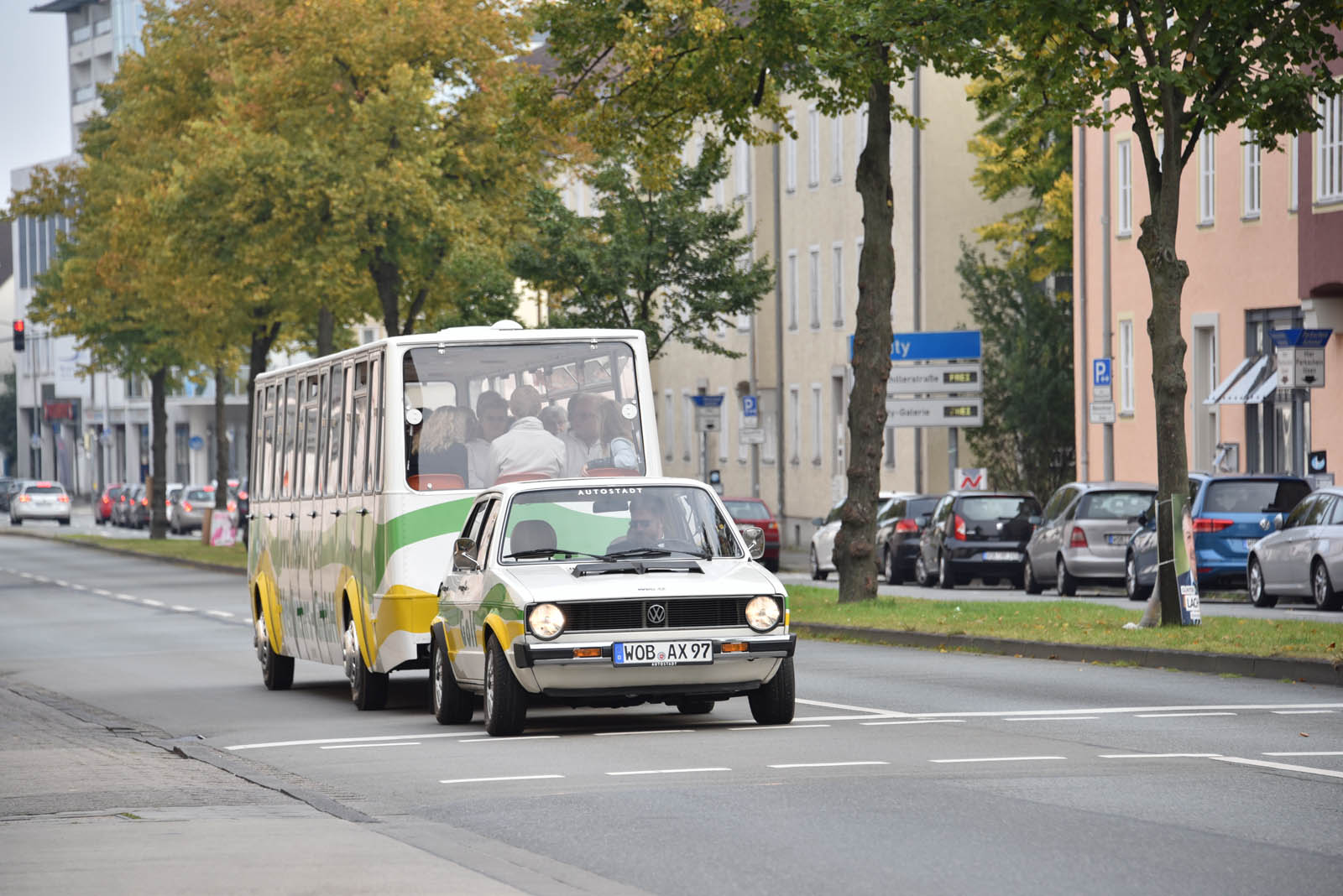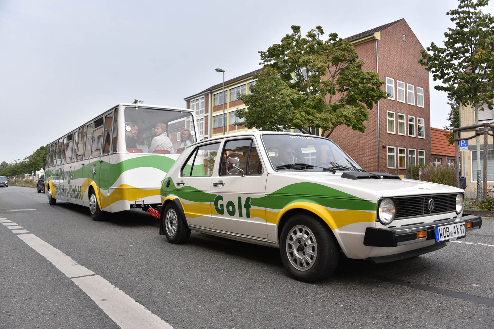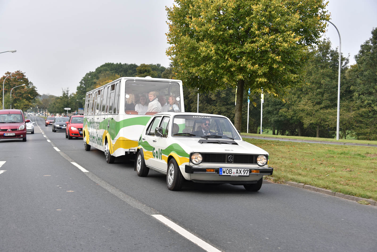 It’s a first-generation Golf, hooked up to a matching trailer with room for 36 people on board. It was called the Bähnle, and was used between 1976 and 2003 for guided tours through the city.