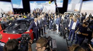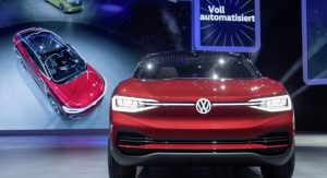 Designed to preview the 2020 production model, the high-riding I.D. Crozz II concept is an electric crossover which is described as an “enhanced version” of the original I.D. Crozz that was shown at the Shanghai Auto Show earlier this year.