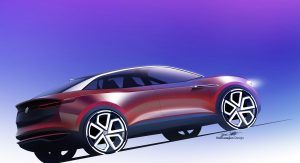 Dressed in Hibiscus Red Metallic paint, the updated model features a stylish exterior with LED headlights and 21-inch alloy wheels. One of the biggest changes from the original concept is a new front fascia which is more “representative” of the production crossover. The sides and “lower part of the rear body” have also been reworked to be more production realistic.