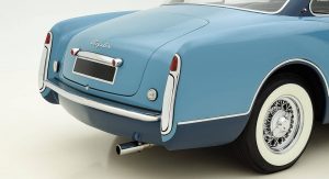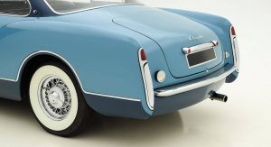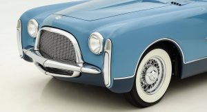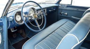 The car disappeared for a number of years before being found by Jacques Pelve, a Chrysler dealer. A restoration commenced in the 1990s and was completed in 2001. As part of the restoration, the Ghia Special Coupe was painted in a two-tone blue color scheme and remains in excellent condition, despite being restored some 16 years ago. In 2015, it was shown at the prestigious Villa d’Este Concorso d’Eleganza.