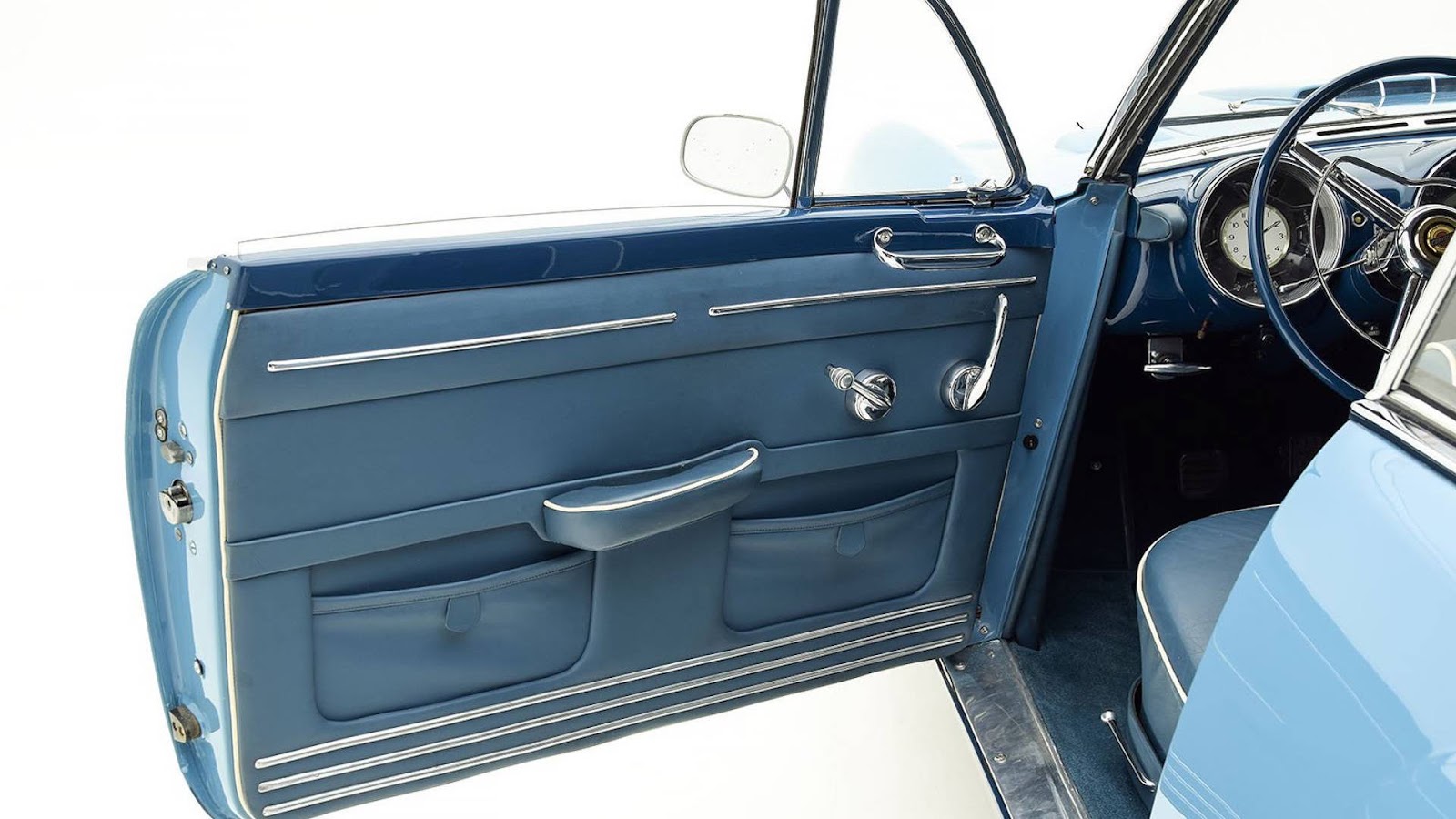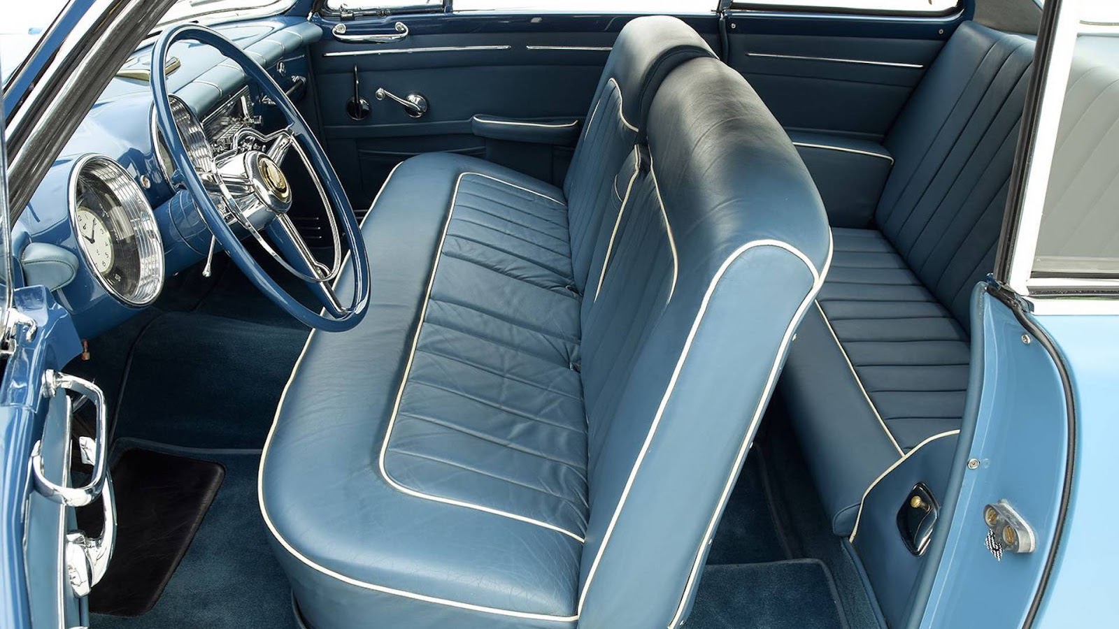The car disappeared for a number of years before being found by Jacques Pelve, a Chrysler dealer. A restoration commenced in the 1990s and was completed in 2001. As part of the restoration, the Ghia Special Coupe was painted in a two-tone blue color scheme and remains in excellent condition, despite being restored some 16 years ago. In 2015, it was shown at the prestigious Villa d’Este Concorso d’Eleganza.