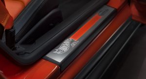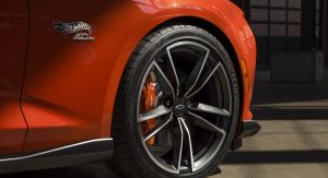 The styling package doesn’t come cheap but it includes a Crush orange exterior with full-length body stripes that are mean to recall the classic orange tracks made by Hot Wheels. The car has also been equipped with orange brake calipers, tinted taillights, and a revised grille that features Galvano Chrome inserts.