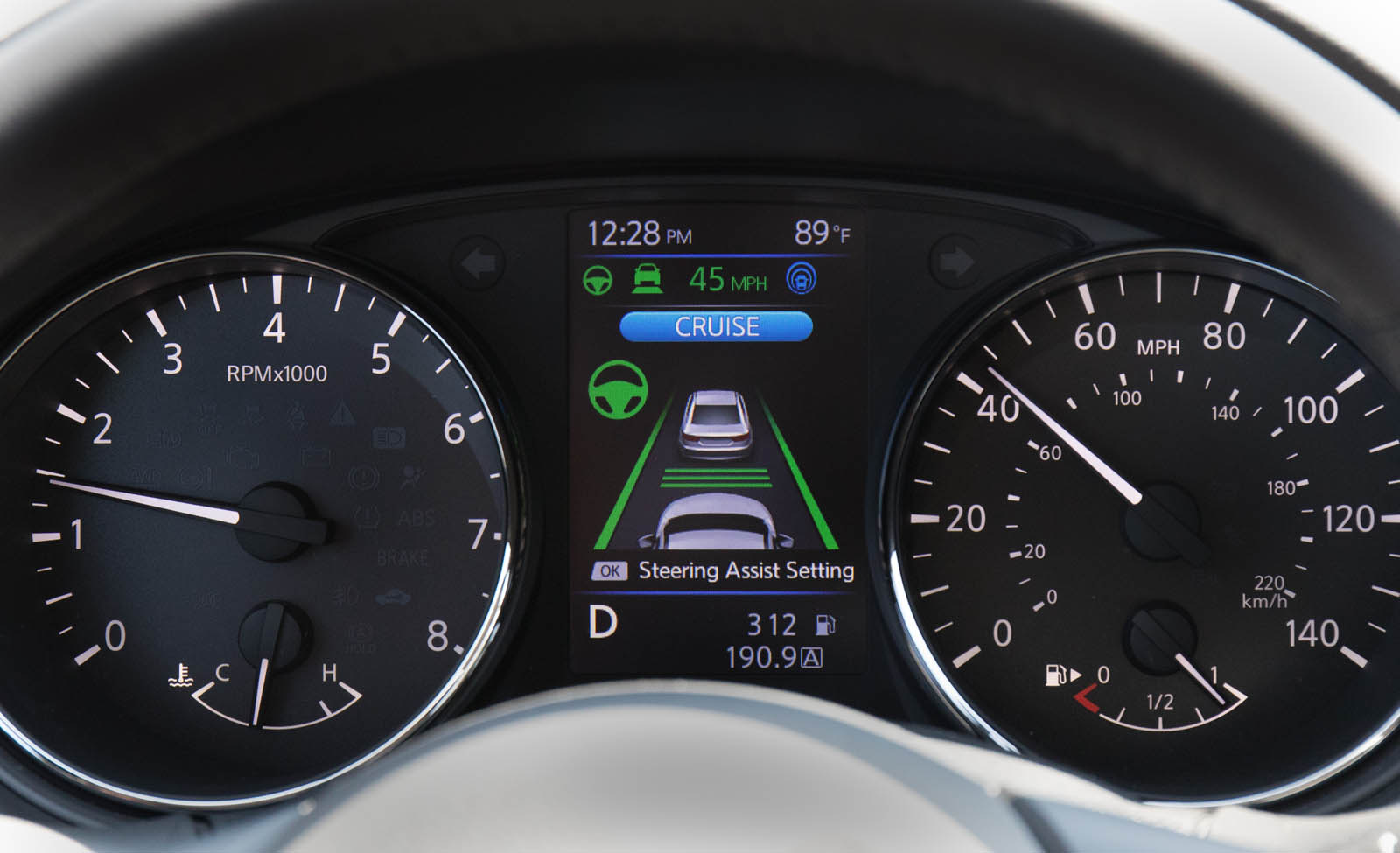 The ProPilot Assist system is only available on the SL trim as part of the Platinum Package, which adds another $770 to the sticker (and includes both the semi-autonomous system and 19-inch alloys). So if you want your Rogue with the advertised lane departure, emergency braking, and intelligent cruise control, you’re looking at a delivered price of $32,805 (or $34,155 with all-wheel drive).