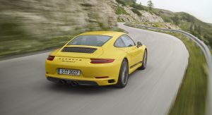 Nevertheless, the car still delivers a respectable 370 hp and 339 lb-ft of torque between 1750 rpm and 5000 rpm. When equipped with the standard manual transmission, the Carrera T reaches 60 mph (96 km/h) in 4.3 seconds, 0.1 seconds quicker than the standard 911 Carrera and a 182 mph top speed. Select for the optional PDK transmission and the 0-60 mph time falls to 4.0 seconds flat while the top speed drops to 180 mph.
