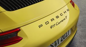 Visually, the Carrera T is differentiated from the rest of the 911 family thanks to new badging, subtle black exterior graphics, custom seat trimmings and door opener loops rather than handles in the cabin. Thanks to a reduction in sound insulation, the Carrera T weighs 3,142 lbs.